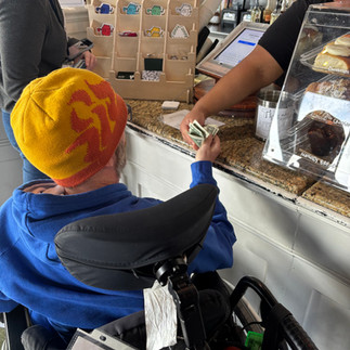 Jared has attended a couple coffee shop outings with his speech therapist where he and other patients get out in the community. Our hope is with more use of that voice he will be able to do more outings while at CNS.